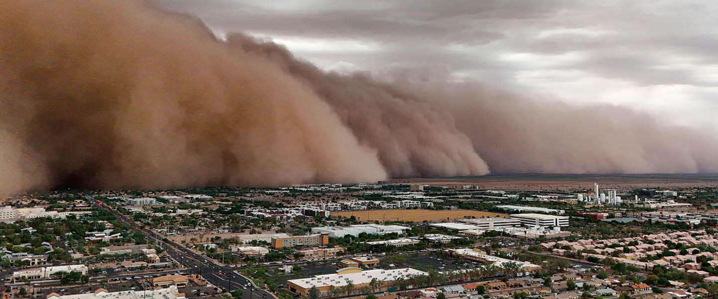 A massive dust storm, called a haboob by meteorologists, swept across central Arizona in late August. In the city of Phoenix, officials were forced to briefly ground flights, and tens of thousands of people lost power. Dust storms such as these form when powerful winds from thunderstorms lift large amounts of dust and debris into the air. The haboobs can stretch for miles, rise thousands of feet into the sky, and arrive with little warning, causing sudden and severe decreases in visibility. They may also stir up pollutants and infectious spores that could cause respiratory illnesses, so experts recommend staying inside until the air clears. Although dust storms are common in the desert zones of the Southwestern United States during heavy rains, this one stood out for its size, with forecasters estimating the dust cloud was 6,000 to 8,000 feet tall, or about as tall as five Empire State Buildings. “In the seven years that I’ve been here, it was the biggest that I’ve seen,” says Sean Benedict, a meteorologist with the National Weather Service in Tempe.