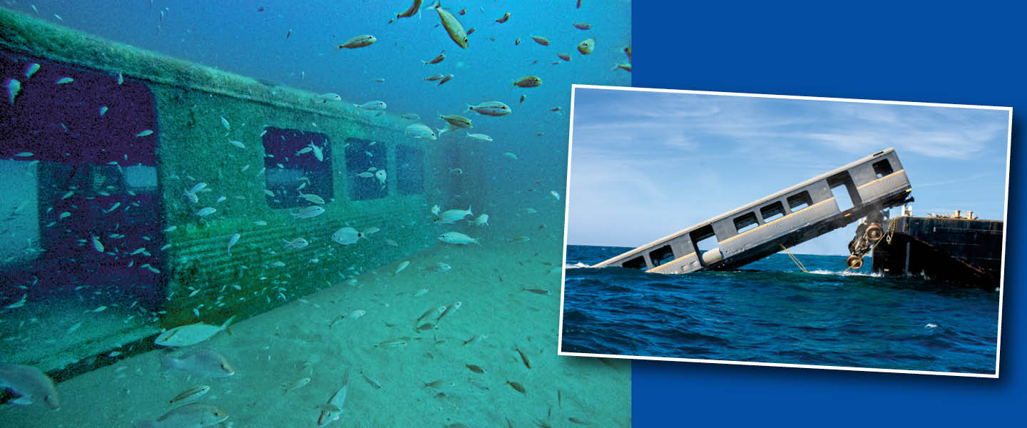 An old subway train car joins an artificial reef in the Atlantic. Georgia Department of Natural Resources