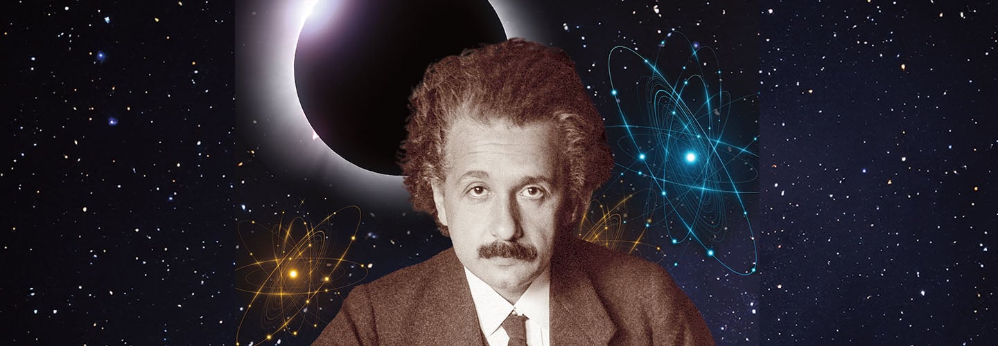 Gregory Shamus/Getty Images (Eclipse); Shutterstock.com (Background); Alpha Historica/Alamy Stock Photo (Einstein)